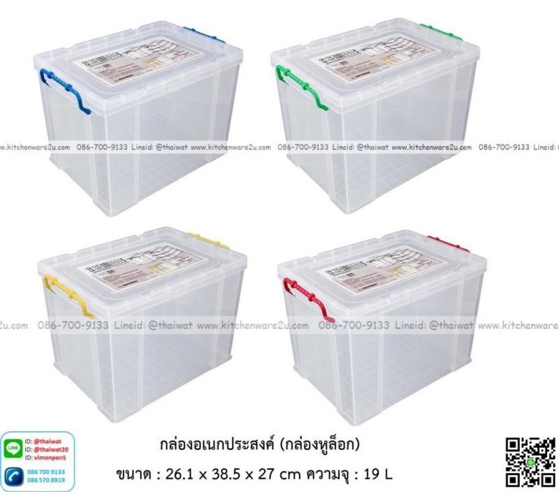 P13632 กล่องเอนกประสงค์ 19 ลิตร (26.1*38.5*27 cm) No.CK-14 เกรดเอ (ราคาขายส่งต่อ 1 โหล: 12 ใบ:เฉลี่ย 205 บต่อใบ)