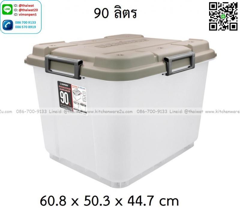 P13635 กล่องเอนกประสงคมีล้อ 90 ลิตร (60.8*50.3*44.7 cm) หูล็อค 4 ด้าน No.K-90 เกรดเอ (ราคาขายส่งต่อ 1 โหล: 12 ใบ:เฉลี่ย 350 บต่อใบ)