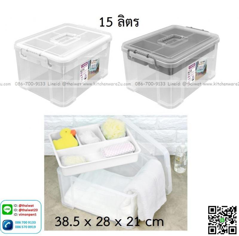 P13643 กล่องเอนกประสงค์พร้อมถาด มีหูหิ้ว 15 ลิตร (38.5*28*21 cm) เกรดเอ No.HK-15 (ราคาขายส่งต่อ 1 โหล: 12 ใบ:เฉลี่ย 210 บต่อใบ)