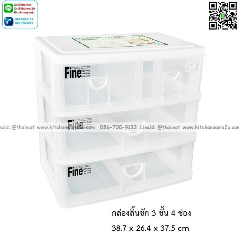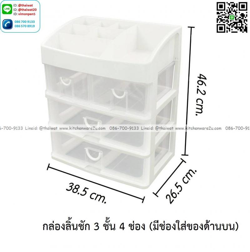 P13974 ลิ้นชักเอนกประสงค์ 3 ชั้น 4 ช่อง (มีช่องใส่ของด้านบน) (38.5*26.5*46.2 cm) สีขาว เกรดเอ No.CA-544 ราคาขายส่งต่อ 6 ชุด: เฉลี่ย 365 บต่อชุด