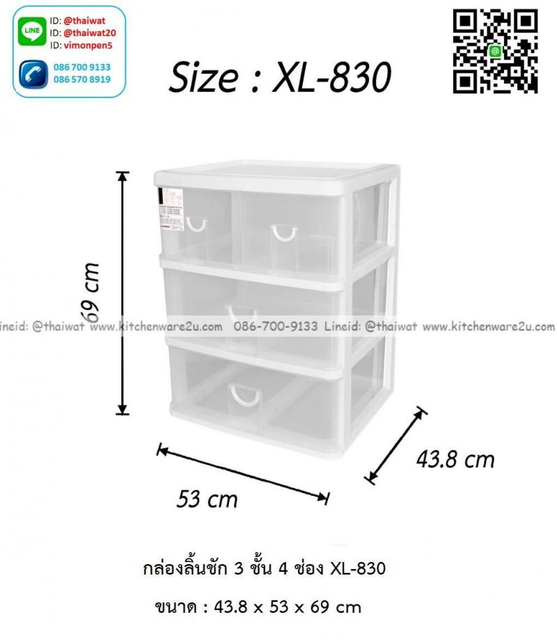 P13978 ลิ้นชักเอนกประสงค์ 3 ชั้น 4 ช่อง (43.8*53*69 cm cm) สีขาว เกรดเอ No.XL-830 ราคาขายส่งต่อ 3 ชุด: เฉลี่ย 900 บต่อชุด