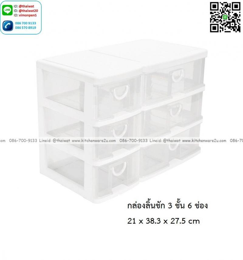 P13979 ลิ้นชักเอนกประสงค์ 3 ชั้น 6 ช่อง (21*38.3*27.5 cm) สีขาว เกรดเอ No.CK-556 ราคาขายส่งต่อ 12 ชุด: เฉลี่ย 235 บต่อชุด