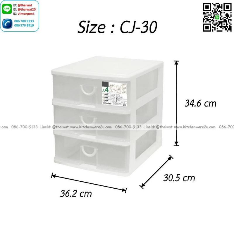 P13980 ลิ้นชักเอนกประสงค์ 3 ชั้น ใส่ A4 (30.5*36.2*34.6 cm) สีขาว เกรดเอ No.CJ-30 ราคาขายส่งต่อ 12 ชุด: เฉลี่ย 300 บต่อชุด