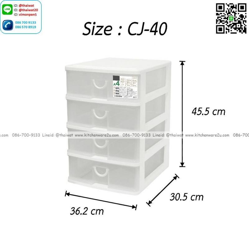 P13981 ลิ้นชักเอนกประสงค์ 4 ชั้น ใส่ A4 ได้ (30.5*36.2*45.5 cm) สีขาว เกรดเอ No.CJ-40 ราคาขายส่งต่อ 12 ชุด: เฉลี่ย 375 บต่อชุด