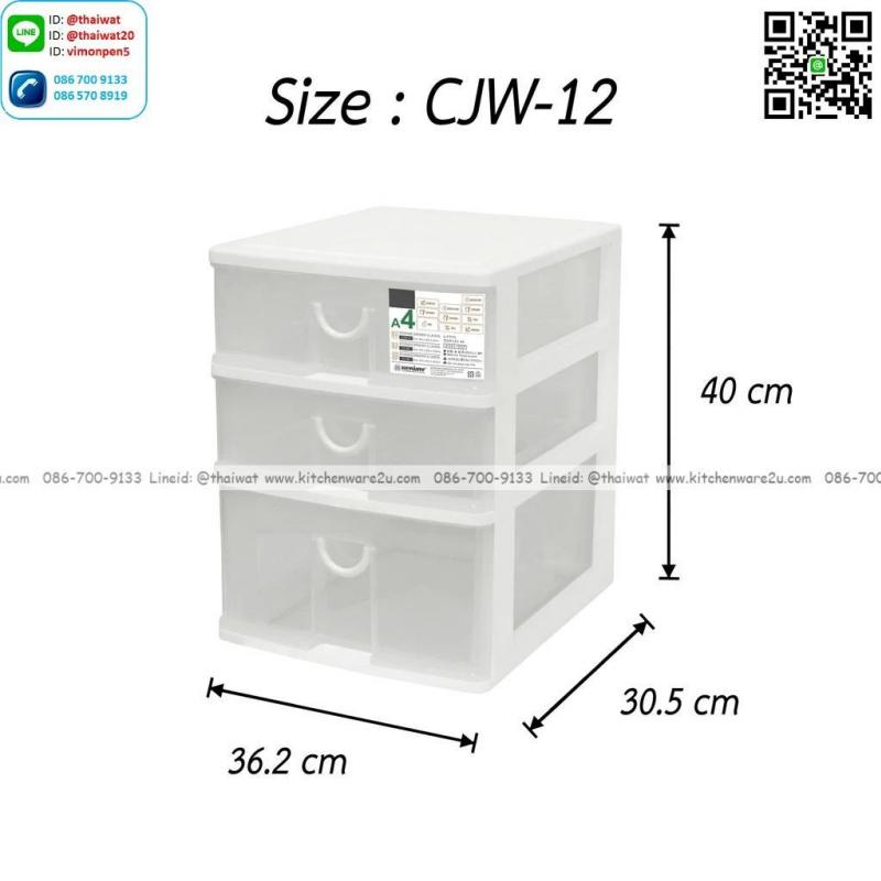 P13982 ลิ้นชักเอนกประสงค์ 3 ชั้น ใส่ A4 ได้ (30.5*36.2*40 cm) สีขาว เกรดเอ No.CJW-12 ราคาขายส่งต่อ 12 ชุด: เฉลี่ย 350 บต่อชุด