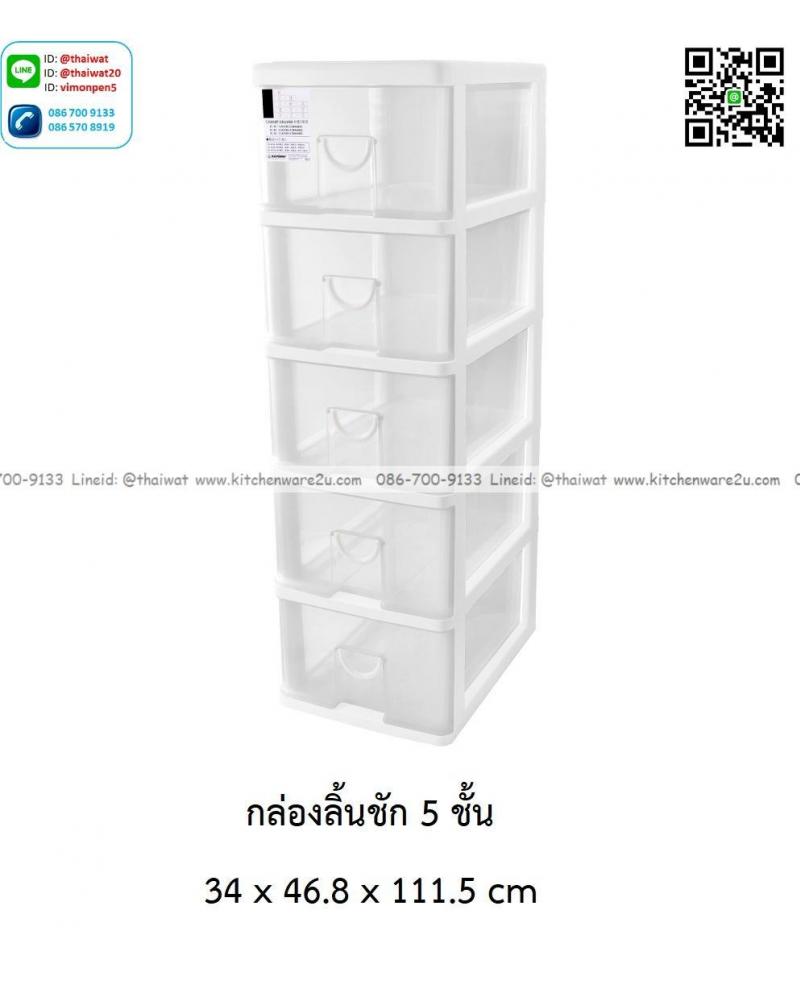 P13987 ลิ้นชักเอนกประสงค์ 5 ชั้น (34*46.8*111.5 cm) สีขาว เกรดเอ No.KL-50 ราคาขายส่งต่อ 2 ชุด: เฉลี่ย 850 บต่อชุด