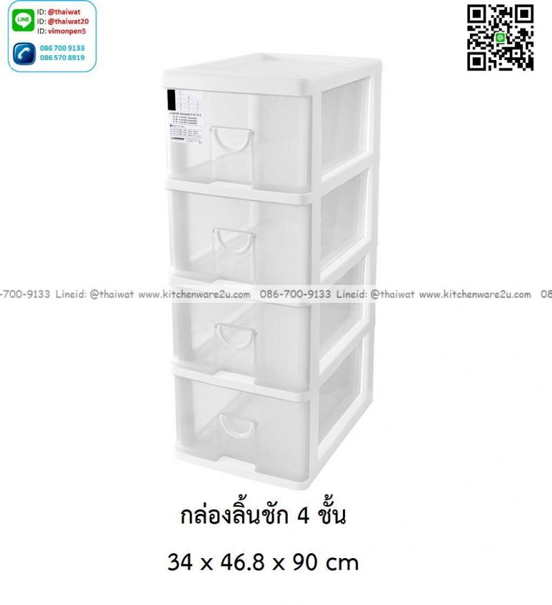 P13988 ลิ้นชักเอนกประสงค์ 4 ชั้น (34*46.8*90 cm) สีขาว เกรดเอ No.KL-40 ราคาขายส่งต่อ 3 ชุด: เฉลี่ย 750 บต่อชุด