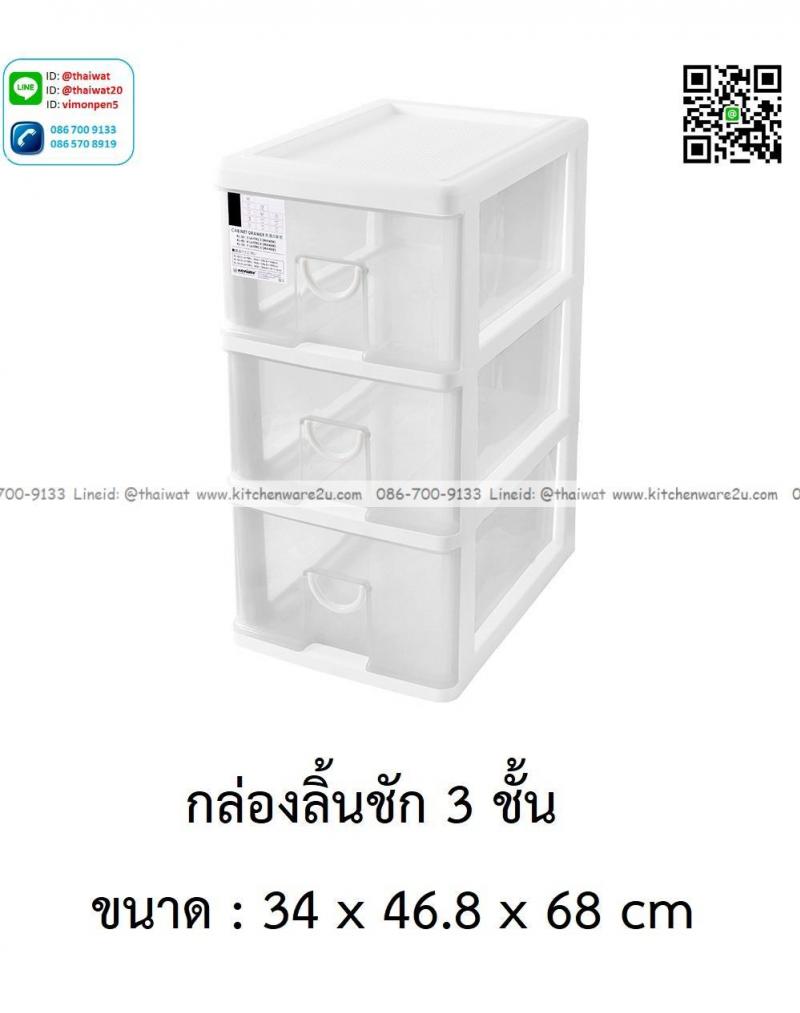 P13989 ลิ้นชักเอนกประสงค์ 3 ชั้น (34*46.8*68 cm) สีขาว เกรดเอ No.KL-30 ราคาขายส่งต่อ 3 ชุด: เฉลี่ย 600 บต่อชุด