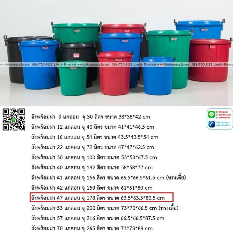 P13934 ถังพร้อมฝา 47 แกลอน จุ 178 ลิตร ขนาด 63.5*63.5*80.5 cm สีดำ ตรางู ราคาขายส่งต่อ 12 ใบ : เฉลี่ย 350 บต่อใบ