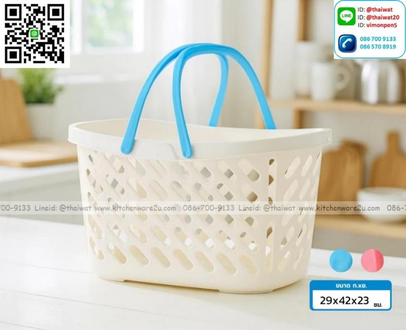 P10845 ตะกร้าเอนกประสงค์ หูหิ้ว (29*42*23 cm) สีขาว เกรดเอ No.BK30 ขายส่งยกมัด (ราคาขายส่งต่อ 1 มัด: 4 โหล: 48 ใบ: เฉลี่ย 60 บต่อใบ)