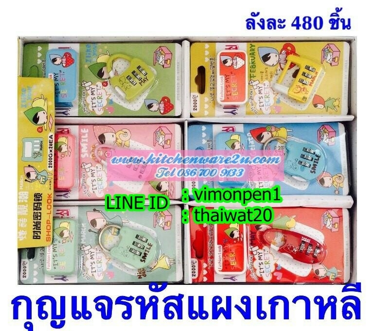 P10164 กุญแจล๊อครหัส ลายการ์ตูน น่ารัก ราคาส่งต่อ 2 โหล: 24 ชุด ()