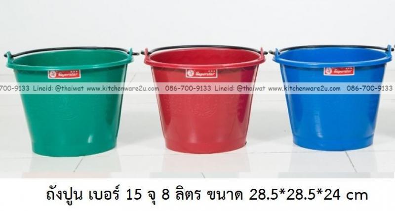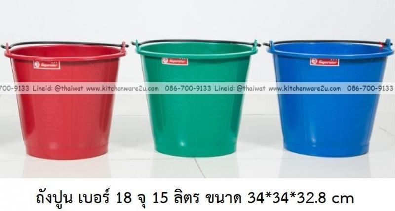 P13921 ถังปูน เบอร์ 18 จุ 15 ลิตร (34*34*32.8 cm) สี ตรางู ราคาขายส่งต่อ 1 โหล: 12 ใบ : เฉลี่ย 42.5 บต่อใบ