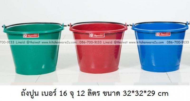 P13923 ถังปูน เบอร์ 16 จุ 12 ลิตร (32*32*29 cm) สี ตรางู ราคาขายส่งต่อ 1 โหล: 12 ใบ : เฉลี่ย 35 บต่อใบ