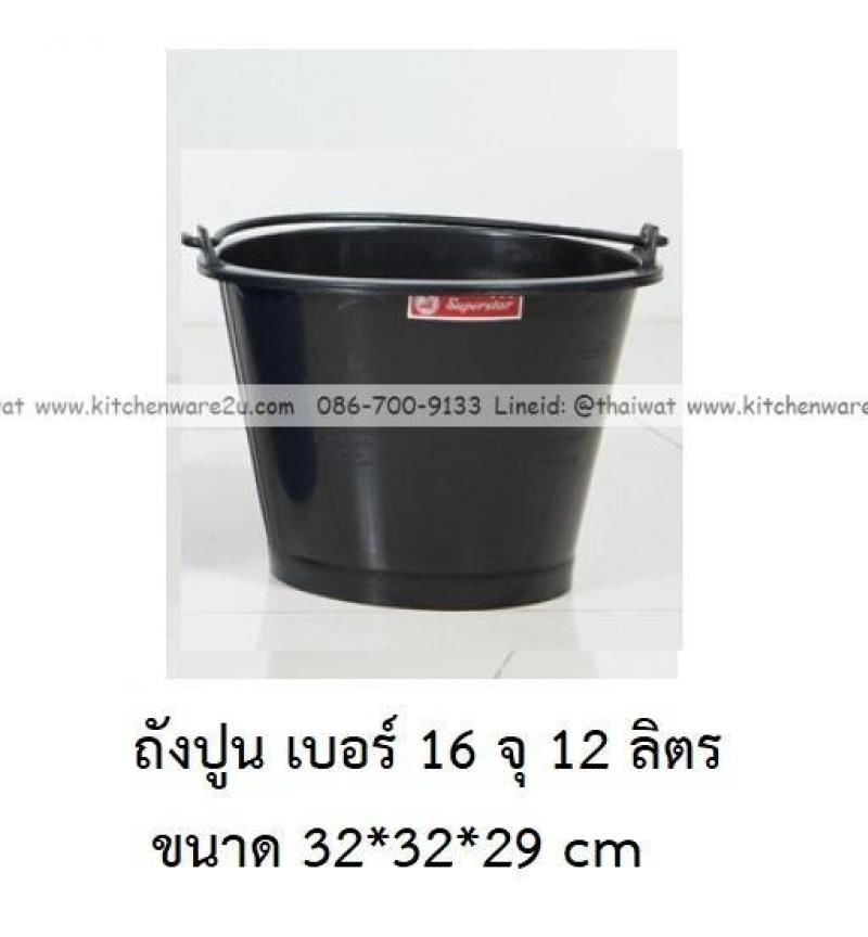 P13924 ถังปูน เบอร์ 16 จุ 12 ลิตร (32*32*29 cm) สีดำ ตรางู ราคาขายส่งต่อ 1 โหล: 12 ใบ : เฉลี่ย 32.5 บต่อใบ