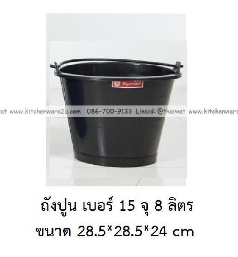 P13926 ถังปูน เบอร์ 15 จุ 8 ลิตร (28.5*28.5*24 cm) สีดำ ตรางู ราคาขายส่งต่อ 2 โหล: 24 ใบ : เฉลี่ย 22.5 บต่อใบ