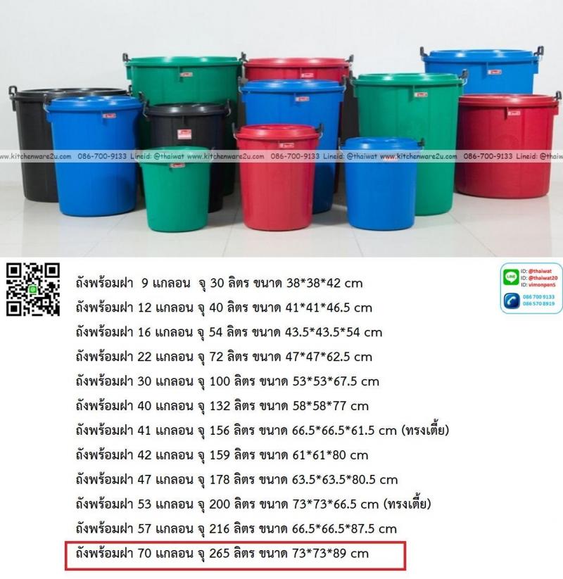 P13928 ถังพร้อมฝา 70 แกลอน จุ 265 ลิตร ขนาด 73*73*89 cm สีดำ ตรางู ราคาขายส่งต่อ 6 ใบ : เฉลี่ย 700 บต่อใบ