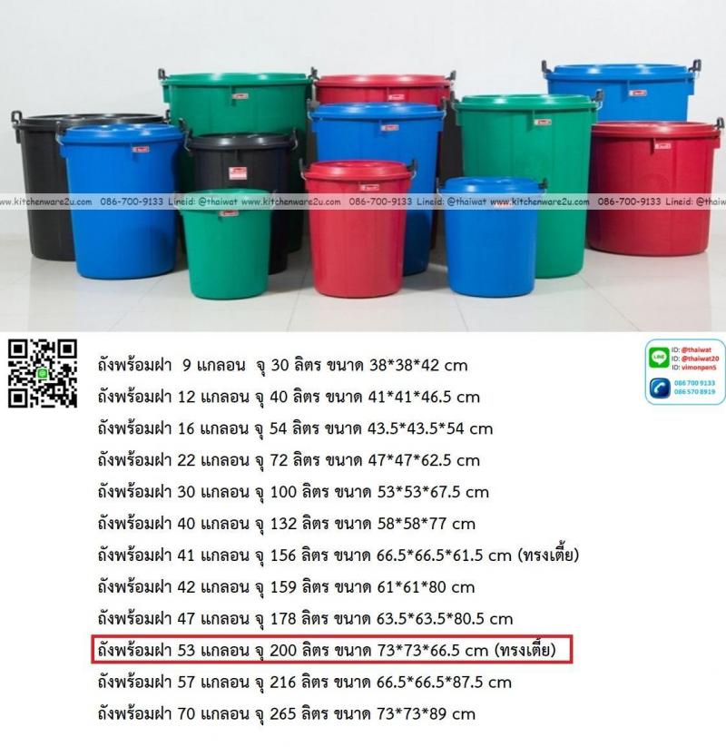 P13931 ถังพร้อมฝา 53 แกลอน จุ 200 ลิตร ขนาด 73*73*66.5 cm (ทรงเตี้ย) สี ตรางู ราคาขายส่งต่อ 12 ใบ : เฉลี่ย 500 บต่อใบ
