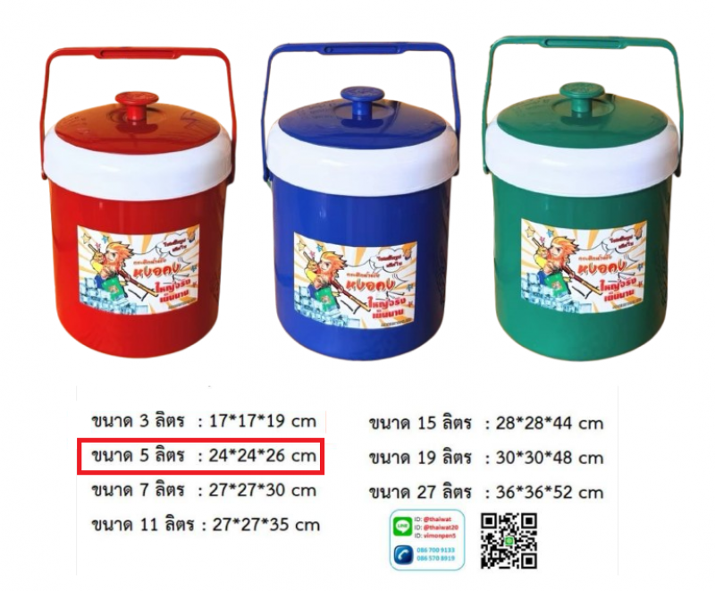 P13686 กระติกกลม 5 ลิตร (24*24*26 cm) No.5 (ราคาขายส่งต่อ 18 ใบ:เฉลี่ย 60 บต่อใบ)