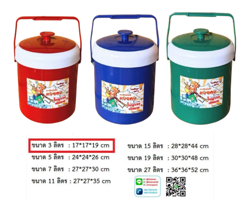 P13687 กระติกกลม 3 ลิตร (17*17*19 cm) No.3 (ราคาขายส่งต่อ 12 ใบ:เฉลี่ย 40 บต่อใบ)