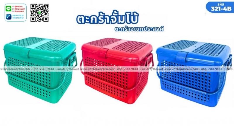 P00491 ตะกร้าหูหิ้ว มีฝาปิด จัมโบ้ รุ่นประหยัด (37*45*37 cm) No.321-4B ราคาส่งต่อ 1 ลัง : 9 ใบ :เฉลี่ยใบละ 105 บาท