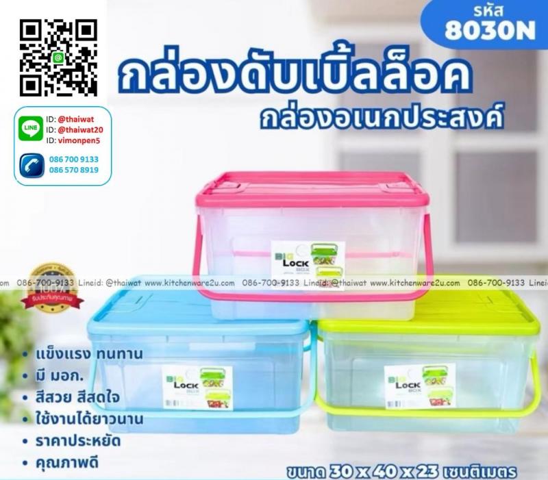 P11119 กล่องเอนกประสงค์ ฝาล๊อค 15 ลิตร (30*40*23 cm) เกรดเอ No.8030 (ราคาขายส่งต่อ 1 โหล: 12 ใบ: เฉลี่ย 150 บต่อใบ)