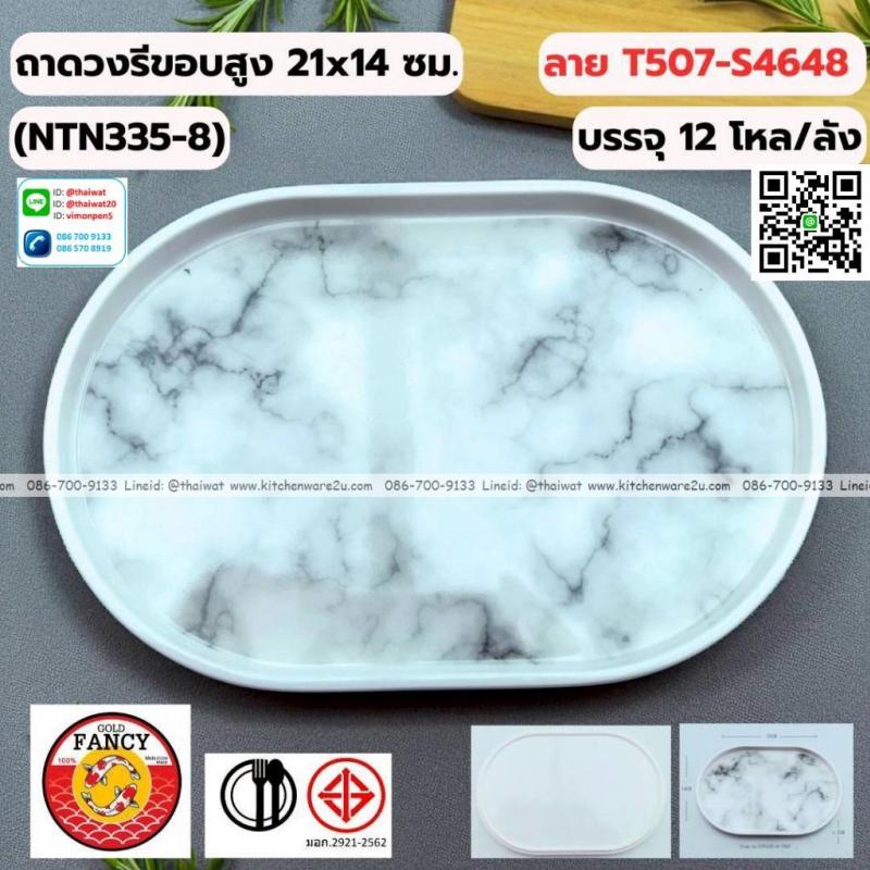 P13698 ถาดวงรีเมลามีนแท้ พิมพ์ลาย (21*14 cm) No.NTN335-8 ขายยกลัง (ราคาขายส่งต่อ 1 ลัง: 12 โหล: 144 ใบ: เฉลี่ย 210 บต่อโหล)