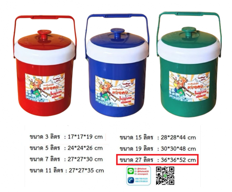 P13681 กระติกกลมจัมโบ้ 27 ลิตร (36*36*52 cm) No.27 (ราคาส่งต่อ 4 ใบ:เฉลี่ย 250 บต่อใบ)