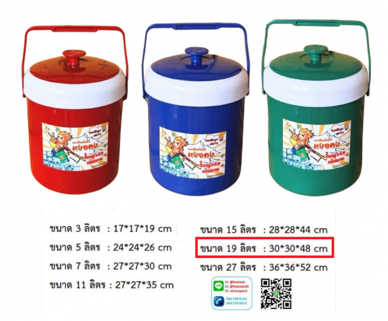 P13682 กระติกกลม 19 ลิตร (30*30*48 cm) No.19 (ราคาขายส่งต่อ 12 ใบ:เฉลี่ย 200 บต่อใบ)
