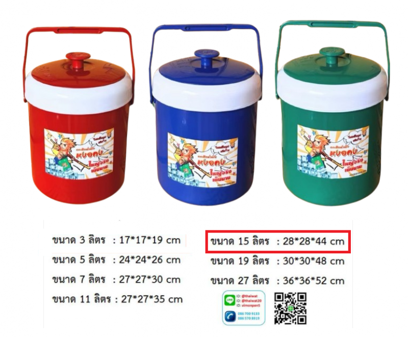 P13683 กระติกกลม 15 ลิตร (28*28*44 cm) No.15 (ราคาขายส่งต่อ 12 ใบ:เฉลี่ย 160 บต่อใบ)