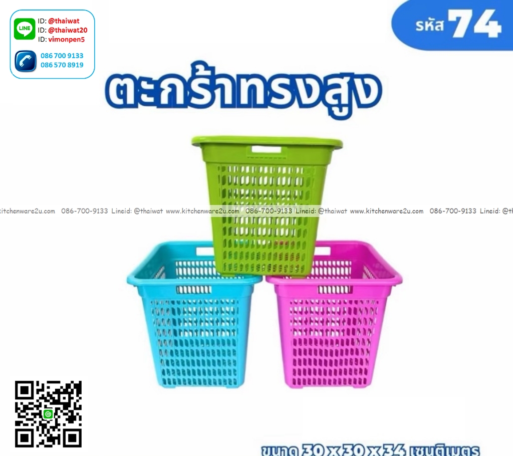 P11227 ตะกร้าเหลี่ยม (30*30*34 cm) สีหวาน No.74 ราคาขายส่งต่อ 1 โหล: 12 ใบ