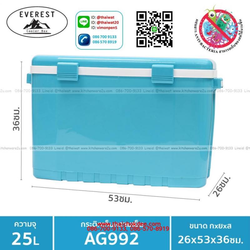 P11446 EVEREST กระติกน้ำแข็ง ถังแช่อเนกประสงค์ ขนาด25ลิตร รุ่น AG992 (26*53*36 cm) เกรดเอ (ราคาส่งต่อ 6 ใบ :เฉลี่ย 650 บต่อใบ)