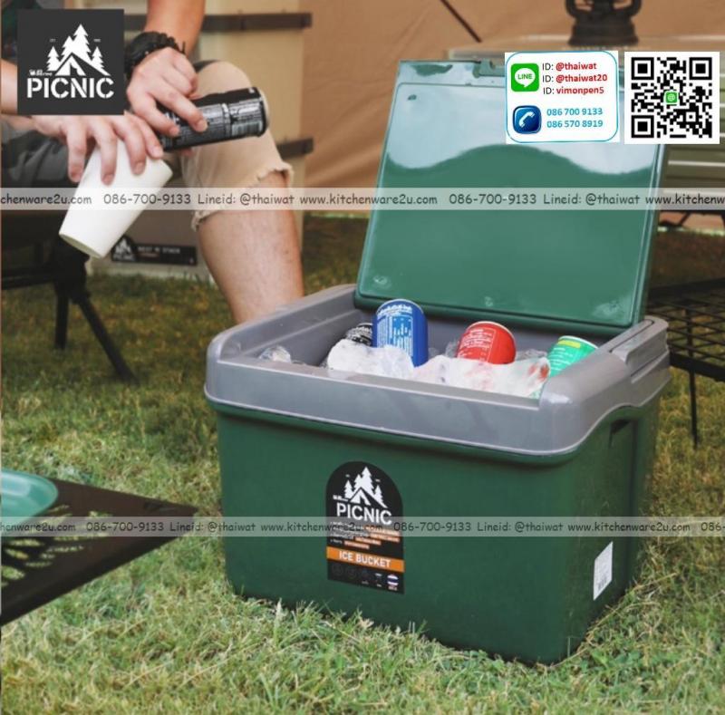 P12186 กระติกน้ำแข็ง ถังน้ำแข็ง ถังแช่เอนกประสงค์ 17 ลิตร มีล้อเลื่อน และสายคล้อง (L17) (30*38*28 cm) สีเขียว+ขาว ราคาขายส่งต่อ 6 ใบ: เฉลี่ย 325 บต่อใบ
