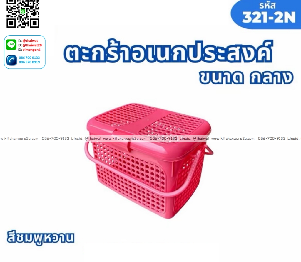 P13075 ตะกร้าหูหิ้ว มีฝาปิด (25*35*21.5 cm) No.321-2A สีสวย ราคาขายส่งต่อ 1 โหล : 12 ใบ:เฉลี่ย 75 บต่อใบ