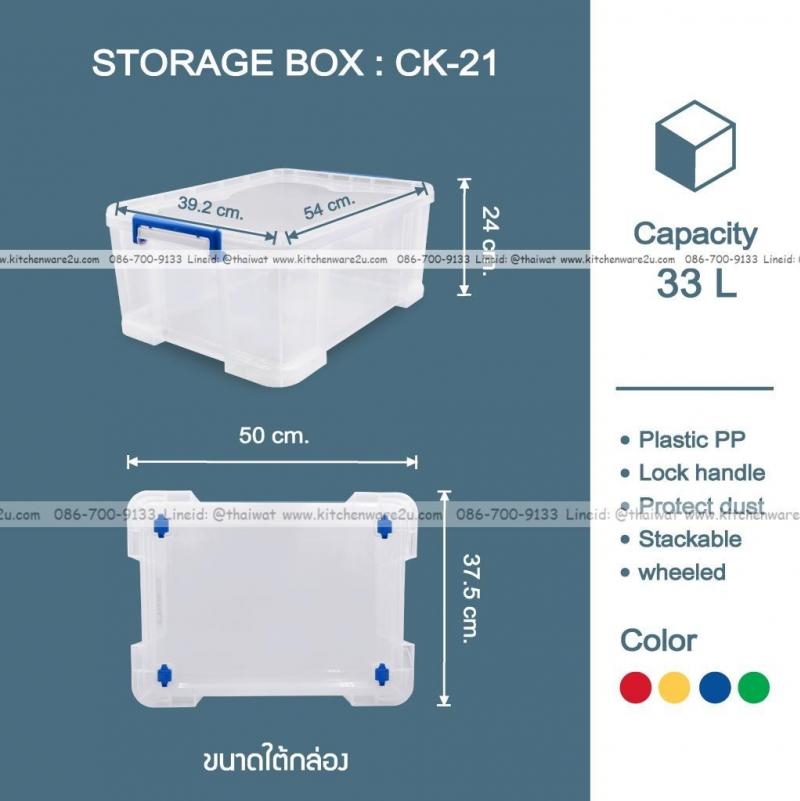 P13625 กล่องเอนกประสงค์ มีล้อ 33 ลิตร (39.2*54*24 cm) No.CK-21 เกรดเอ (ราคาขายส่งต่อ 1 โหล: 12 ใบ:เฉลี่ย 325 บต่อใบ)