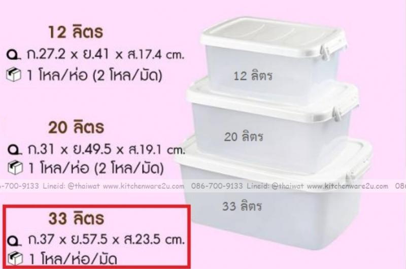 P13772 กล่องเอนกประสงค์ 33 ลิตร ฝาล๊อค (37*57.5*23.5 cm) สีขาว เกรดเอ No.197 (ราคาขายส่งต่อ 1 โหล: 12 ใบ: เฉลี่ย 145 บต่อใบ)