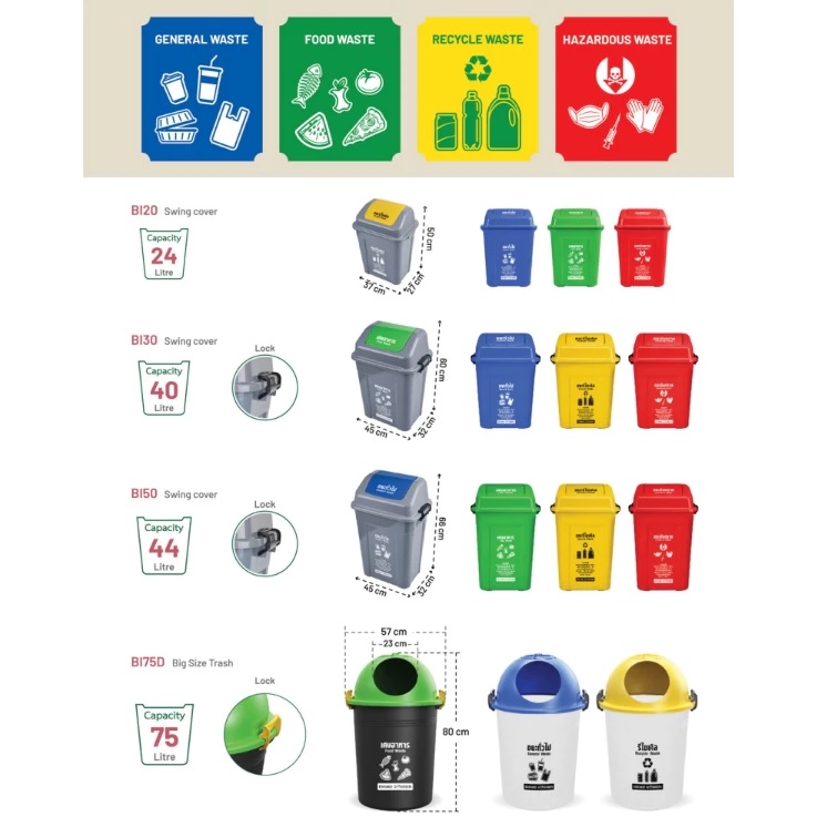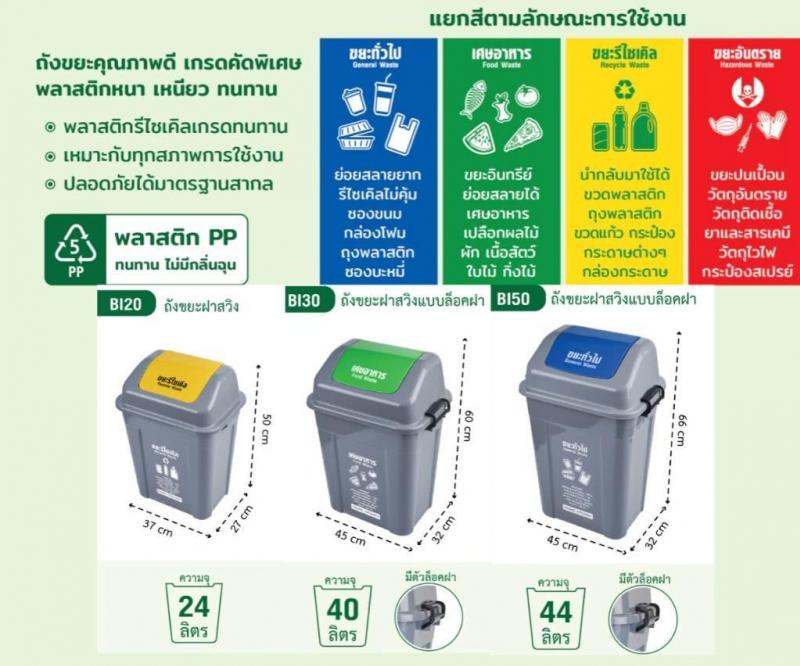 P13789 ถังขยะเหลี่ยมพร้อมฝา 44 ลิตร (32*43*66 cm) ตัวสีเทา ฝาเลือกสีได้ No.BI50 (ราคาขายส่งต่อ 12 ใบ:เฉลี่ย 275 บต่อใบ)