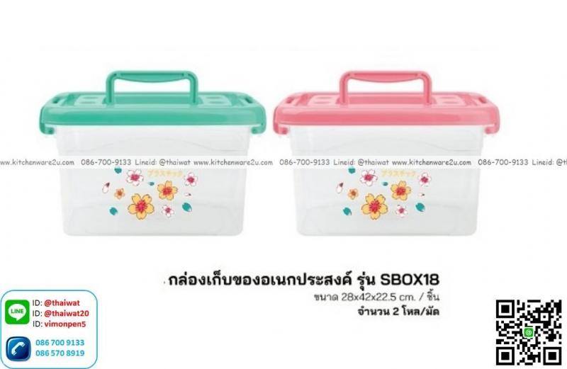 P13808 กล่องเอนกประสงค์ 18 ลิตร มีหูหิ้ว ล๊อคได้ (28*42*22.5 cm) ขายดี No.SBOX18 ขายยกมัด (ราคาขายส่งต่อ 2 โหล : 24 ใบ:เฉลี่ย 125 บต่อใบ)