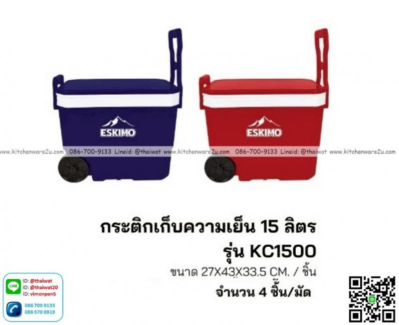 P13835 กระติกน้ำเหลี่ยม 15 ลิตร (36*59*41.5 cm) มีล้อลาก เกรดเอ No.KC1500 (ราคาขายส่งต่อ 4 ใบ:เฉลี่ย 550 บต่อใบ)