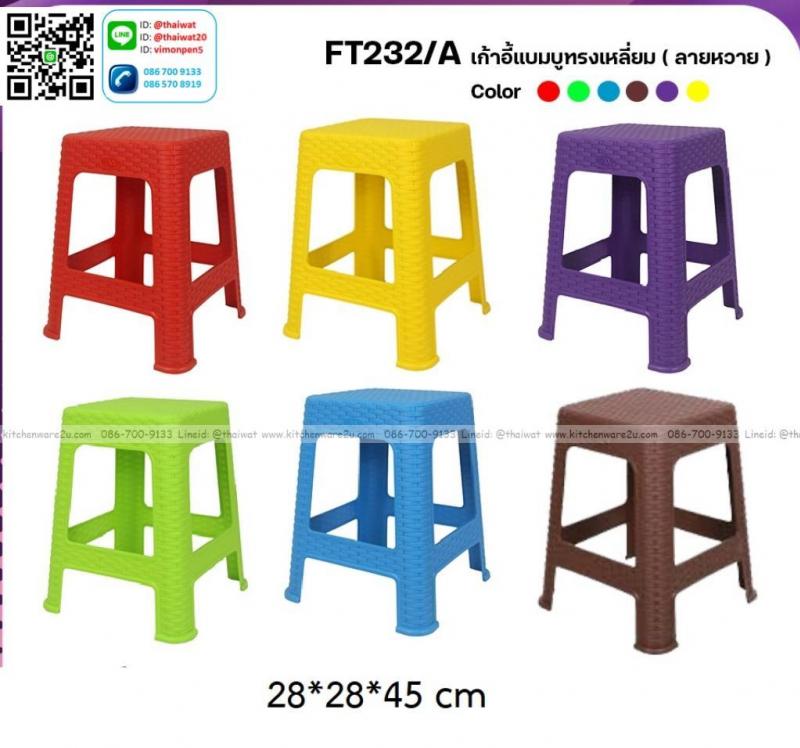 P13852 เก้าอี้ลายหวาย มียางกันลื่น (28*28*45 cm) No.232 ราตาขายส่งต่อ 1 โหล: 12 ตัว: เฉลี่ย 95 บต่อตัว
