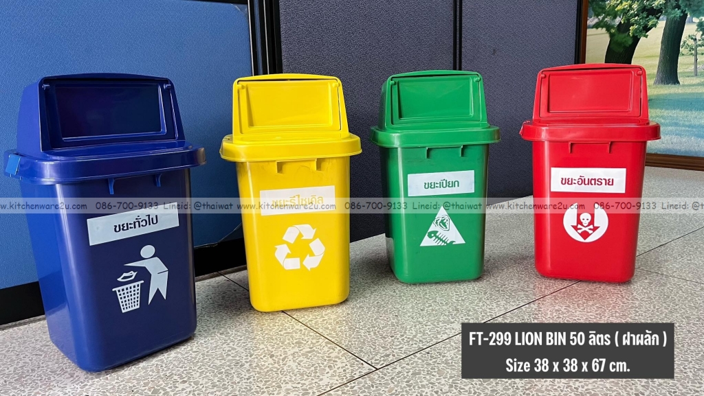 P13857 ถังขยะ ฝาสวิง 50 ลิตร (38 x 38 x 67 cm) สุดคุ้ม แข็งแรง หนา No.299 ราคาส่งต่อ 12 ใบ :เฉลี่ย 250 บต่อใบ