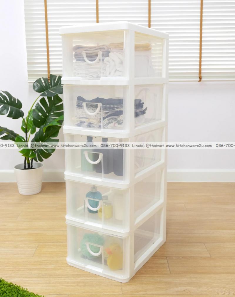 P13987 ลิ้นชักเอนกประสงค์ 5 ชั้น (34*46.8*111.5 cm) สีขาว เกรดเอ No.KL-50 ราคาขายส่งต่อ 2 ชุด: เฉลี่ย 850 บต่อชุด