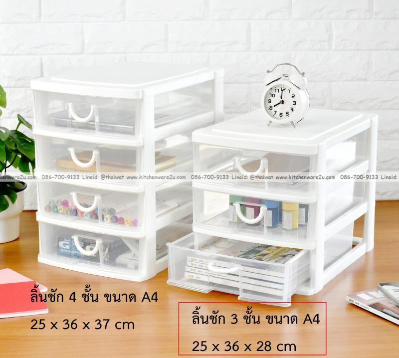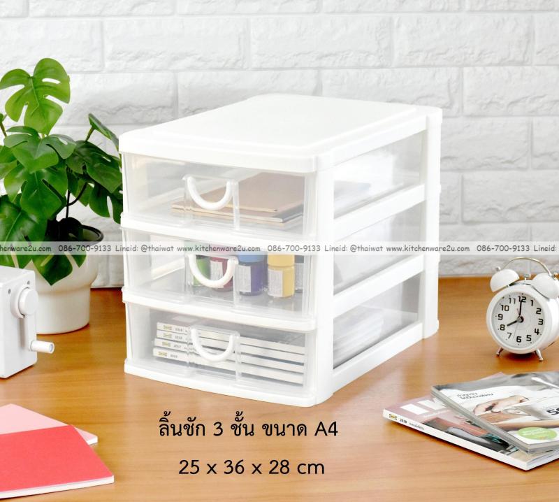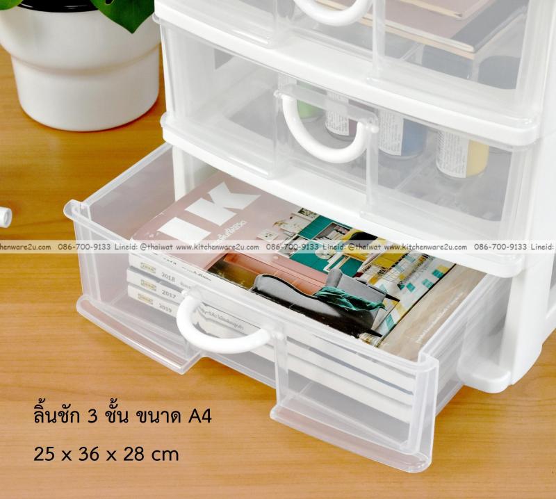 P13993 ลิ้นชักเอนกประสงค์ 3 ชั้น A4 (25*36*28 cm) สีขาว เกรดเอ No.CA-583 ราคาขายส่งต่อ 12 ชุด: เฉลี่ย 250 บต่อชุด