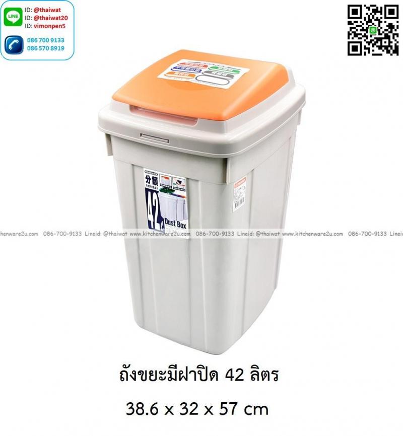 P14111 ถังขยะฝาสวิง 42 ลิตร (38.6*32*57 cm) No.CL42 เกรดเอ ราคาขายส่งต่อ 6 ใบ : เฉลี่ย 375 บต่อใบ