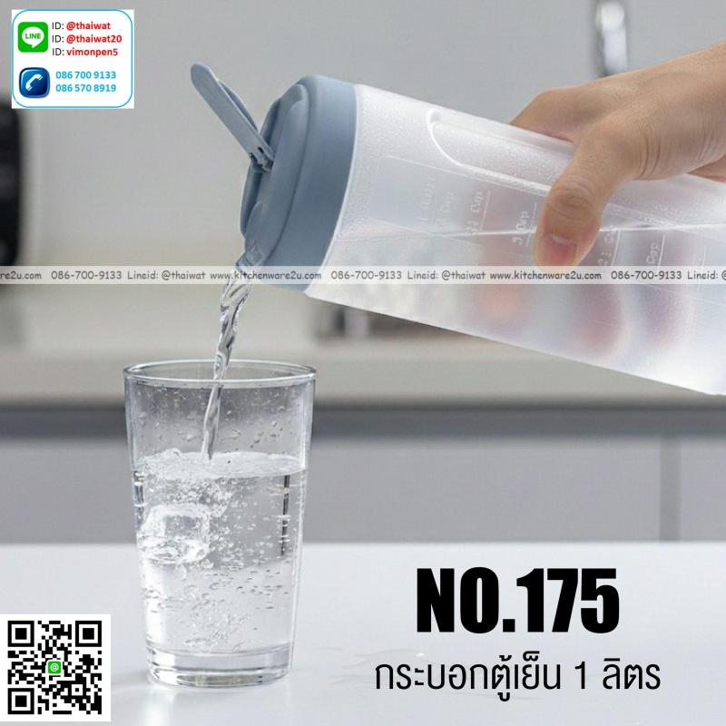 P07074 ขวดน้ำ เกรดเอ 1 ลิตร มีสเกล (9*9*23.5 cm.) No.175 ราคาขายส่งต่อ 1 โหล : 12 ใบ