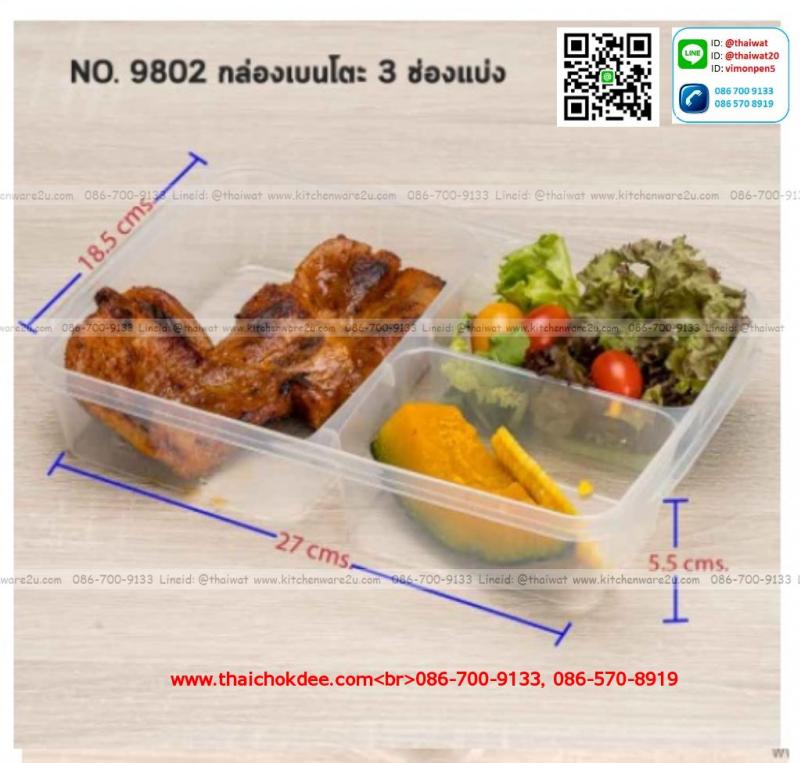 P09535 กล่องเบนโต๊ะ สามช่อง (18.5 x 27 x 5.5 cm) สามารถเวฟ และใช้ซ้ำได้ (ราคาส่งต่อ 1 โหล:12 ใบ)