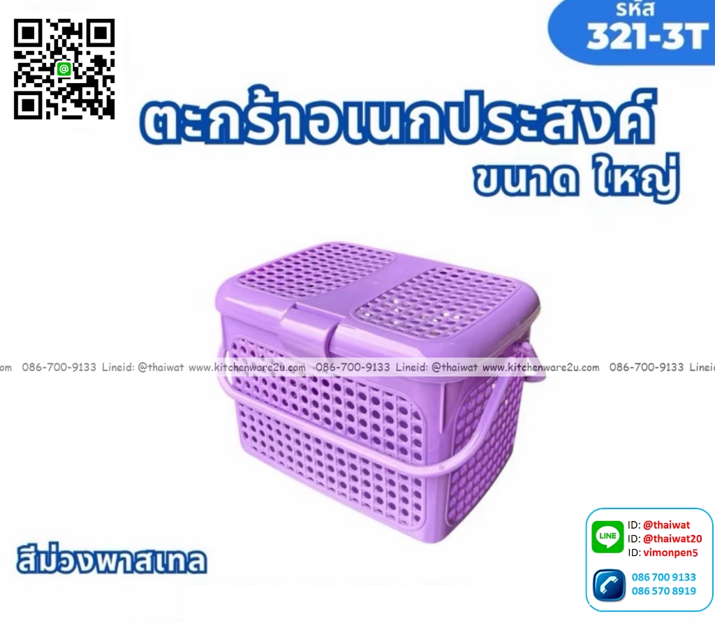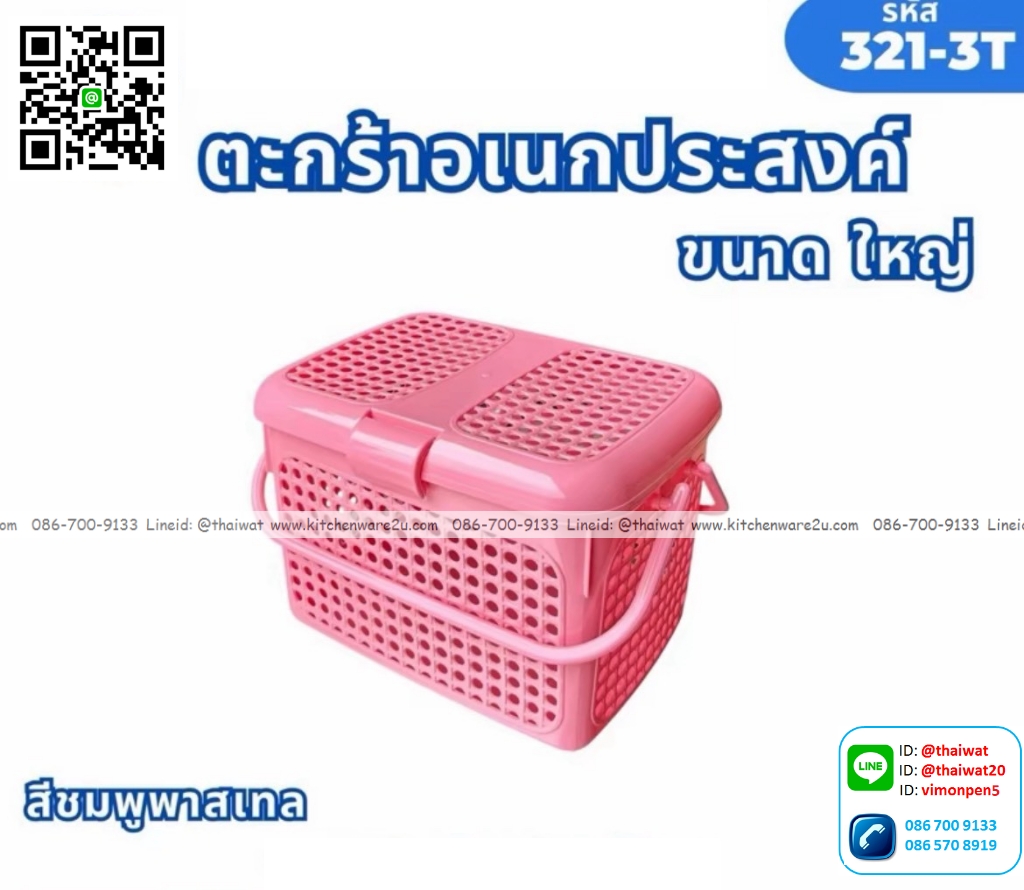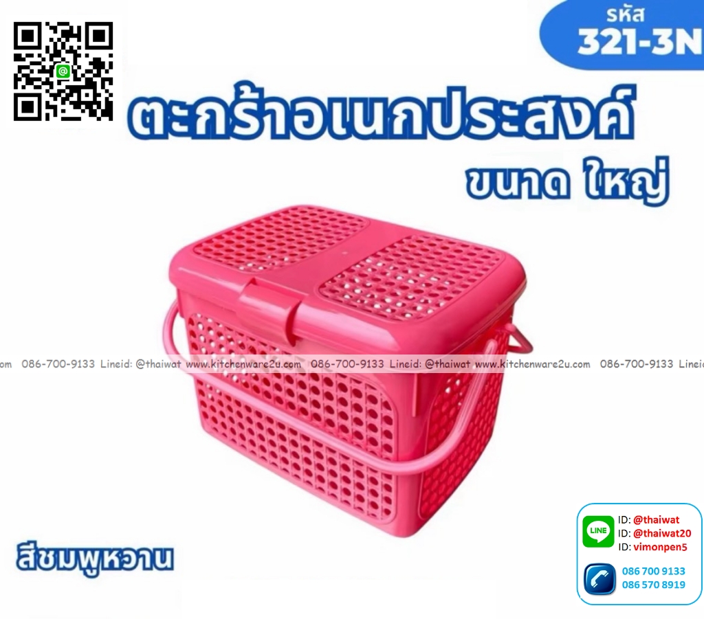 P01401 ตะกร้าหูหิ้ว มีฝาปิด (30*42*27 cm) No.321-3A สีสวย ราคาขายส่งต่อ 18 ใบ: เฉลี่ย 90 บต่อใบ