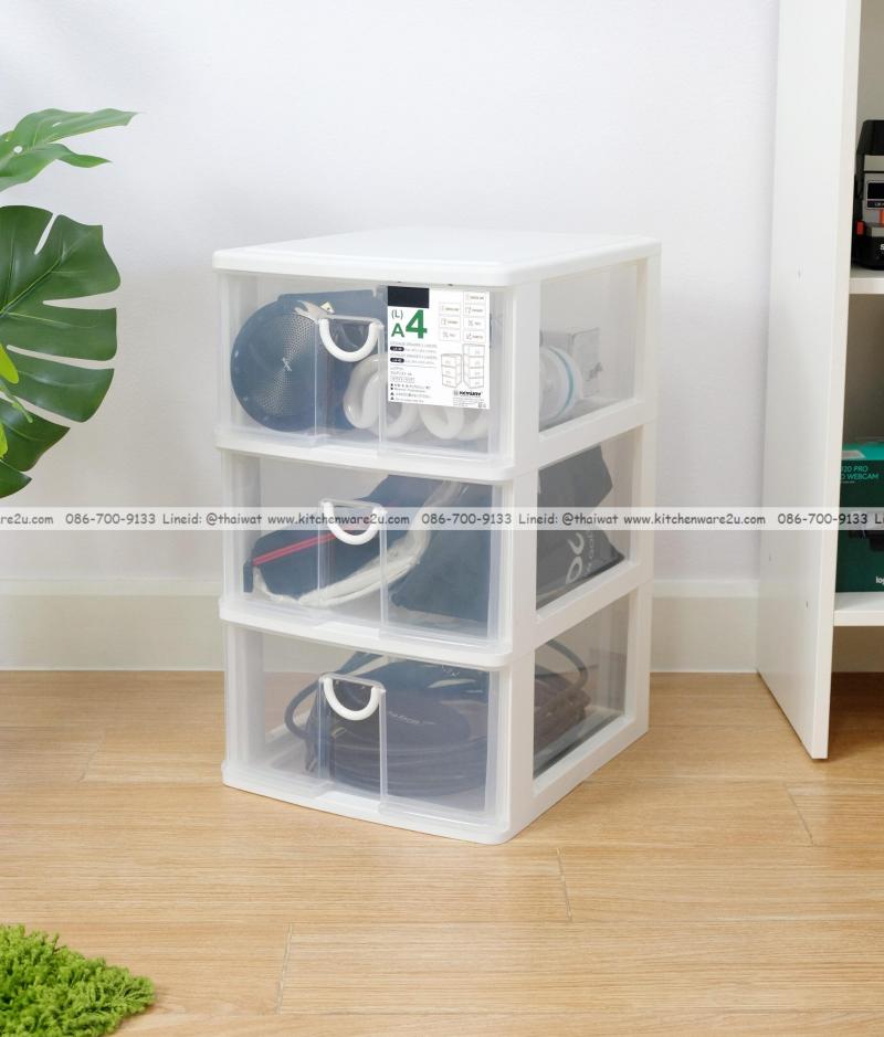 P10448 ลิ้นชักเอนกประสงค์ 3 ชั้น ใส่ A4 ได้ (30.5*36.2*50.6 cm) สีขาว เกรดเอ No.LA-30 ราคาขายส่งต่อ 4 ชุด: เฉลี่ย 390 บต่อชุด