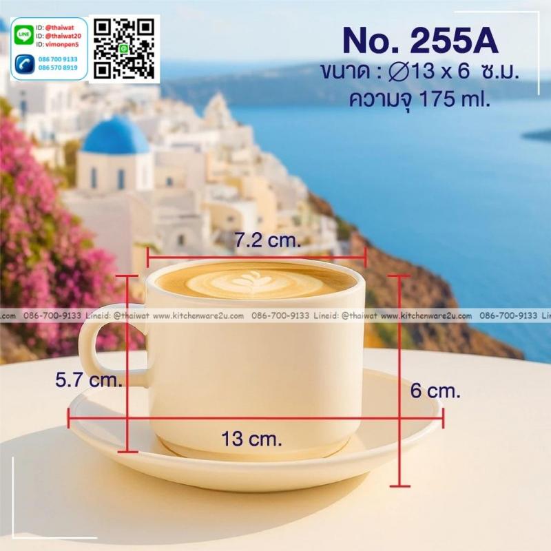 P06125 ชุดกาแฟ จานรอง+ถ้วย เกรดเอ (13 x 13 x 6 cm)สีสวย 255+AS (ราคาส่งต่อ 12โหล:144 ชุด :เฉลี่ย 15 บต่อชุด)