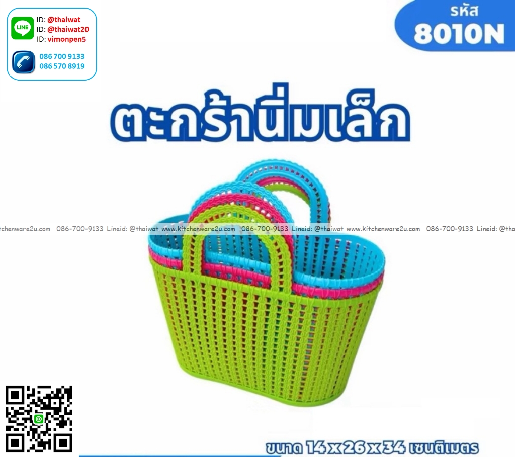 P02079 ตะกร้าช๊อปปิ้งเล็ก (14*26*34 cm) ดีไซน์ใหม่ No.8010CN ราคาขายส่งต่อ 1 โหล: 12 ใบ