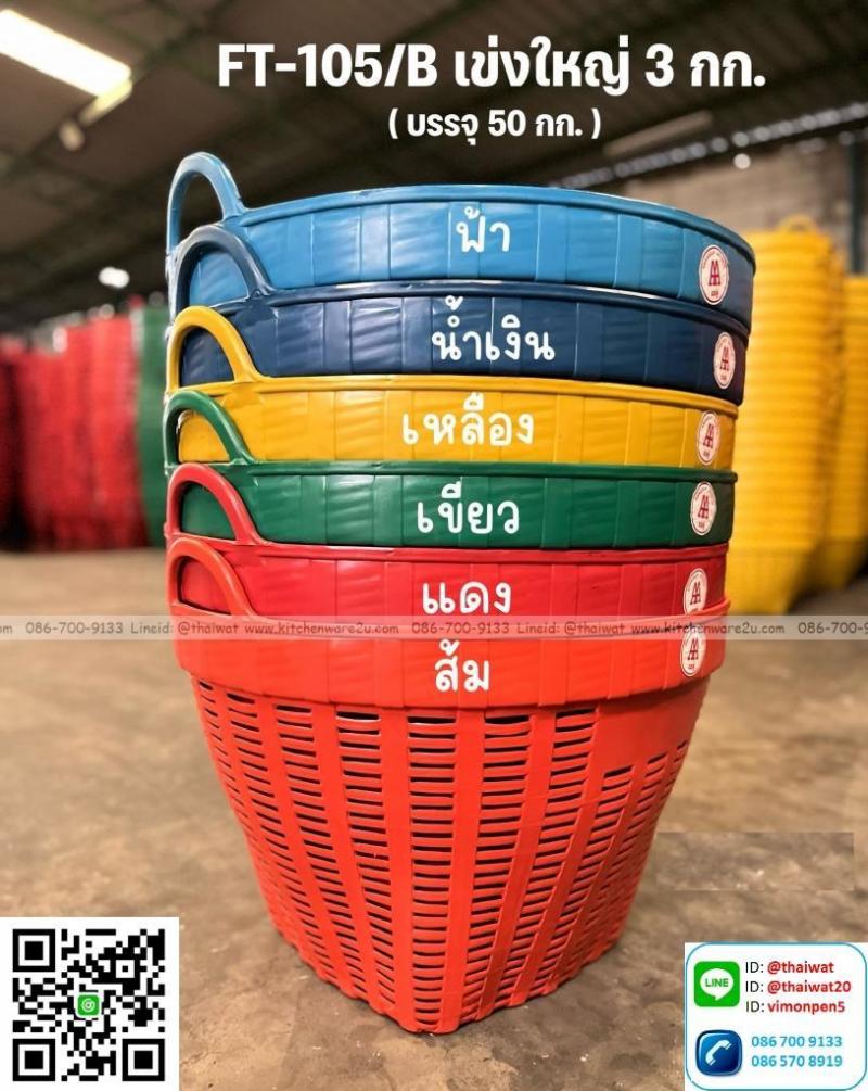 P12773 เข่งเบอร์ 5 (43*43*33 cm) แบบสี รุ่นประหยัด ราคาขายส่งต่อ 1 มัด: 36 ใบ: เฉลี่ย 45 บต่อใบ